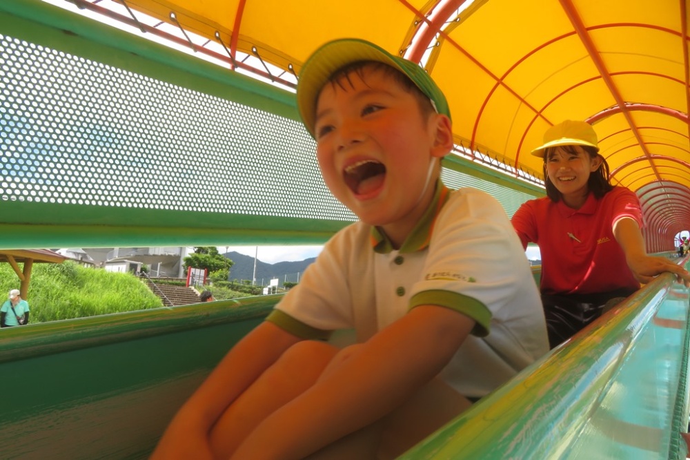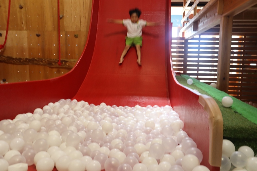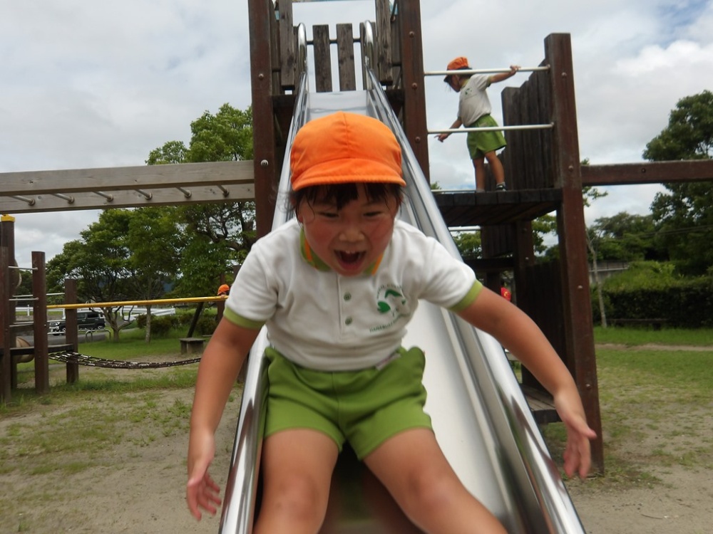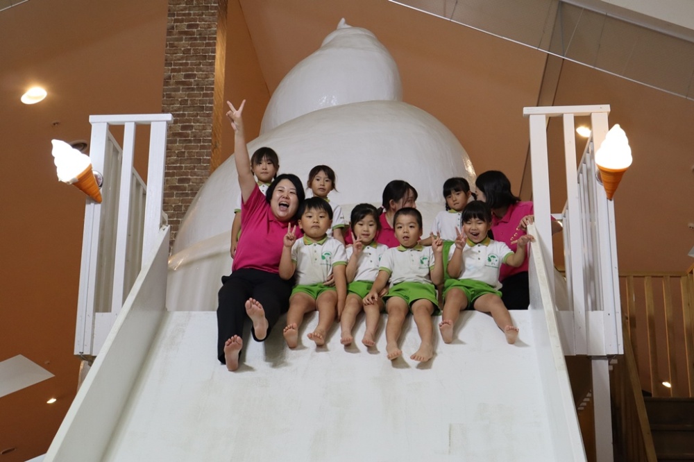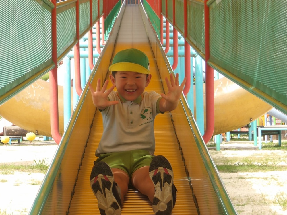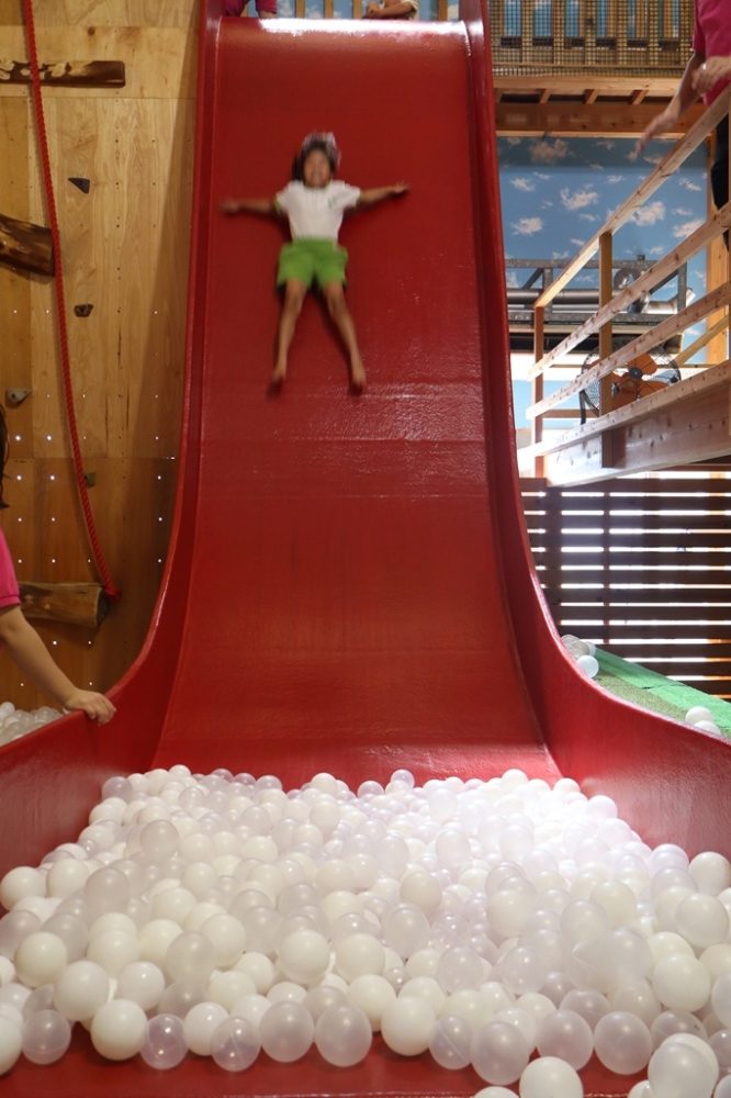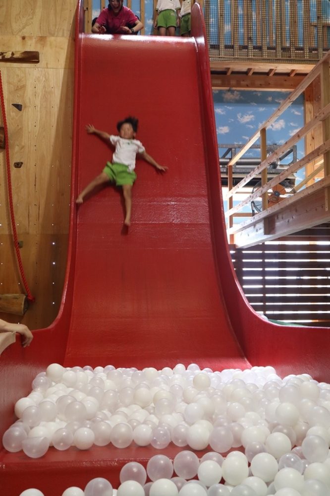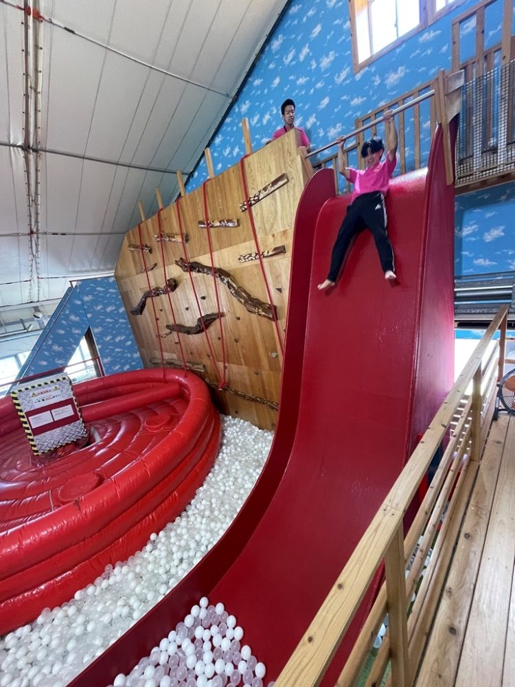 最後の滑り台から滑らせてる足はたけみつ先生でした!
