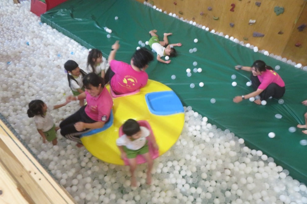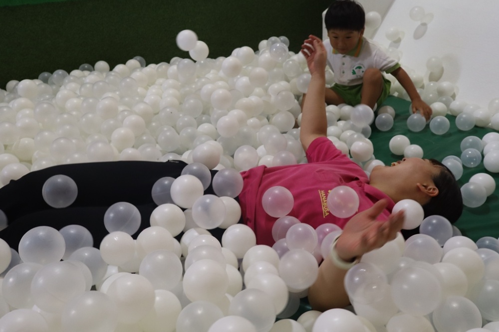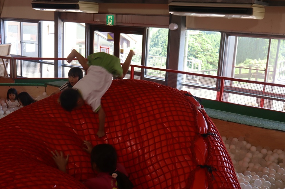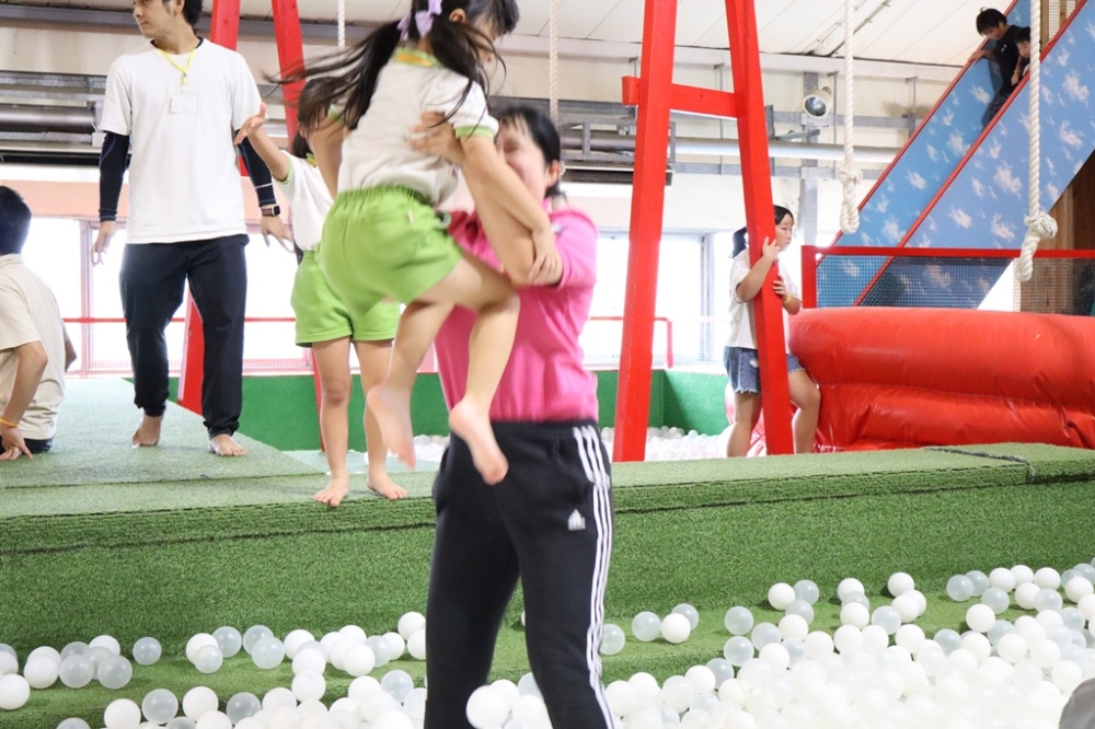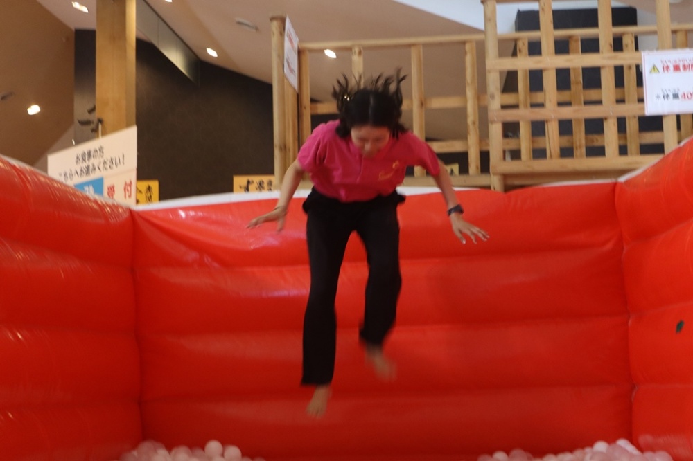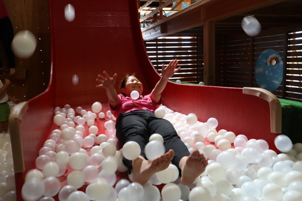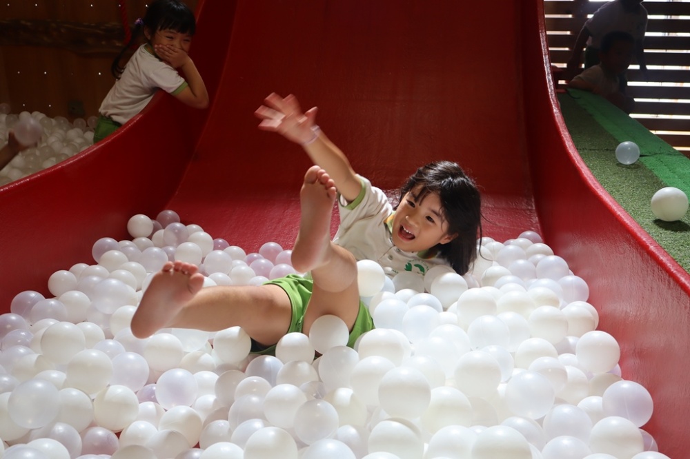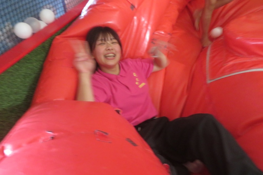 最後の滑り台から滑らせてる足はたけみつ先生でした!
