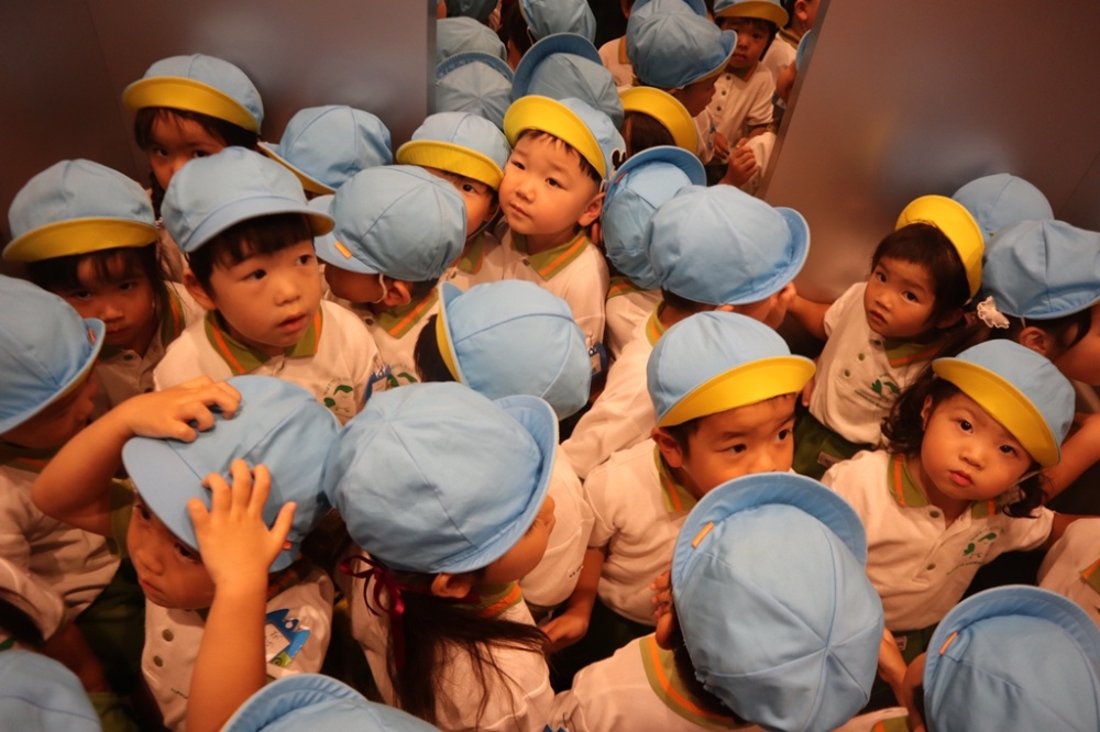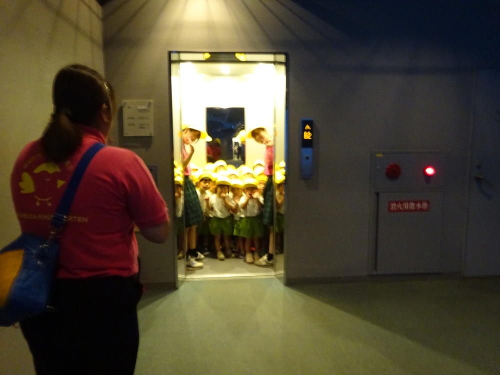 ドキドキしながらみんなでエレベーターにもみんなで乗ったよ♬