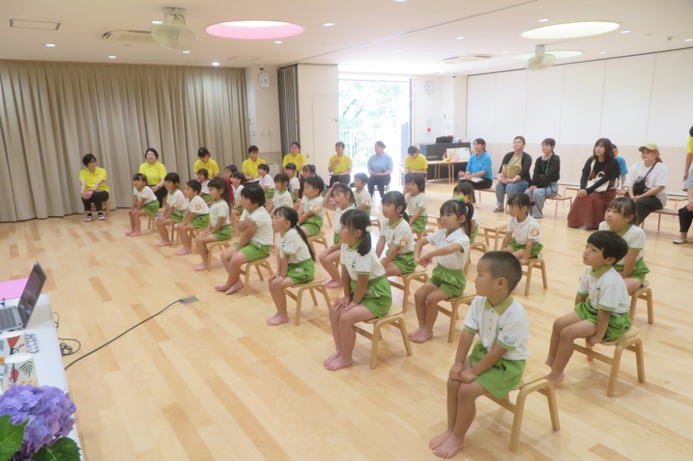 子どもたちも先生たちもしっかり座ってスタンバイOK👌
