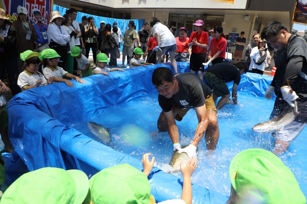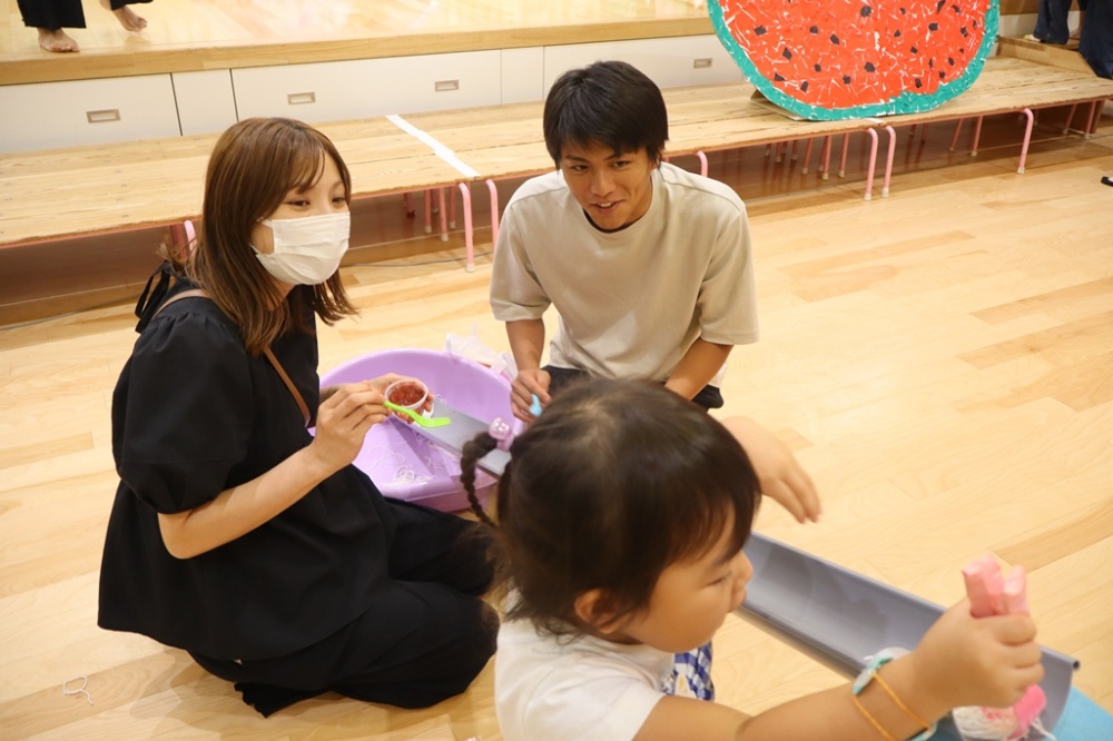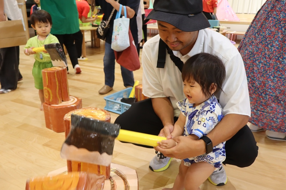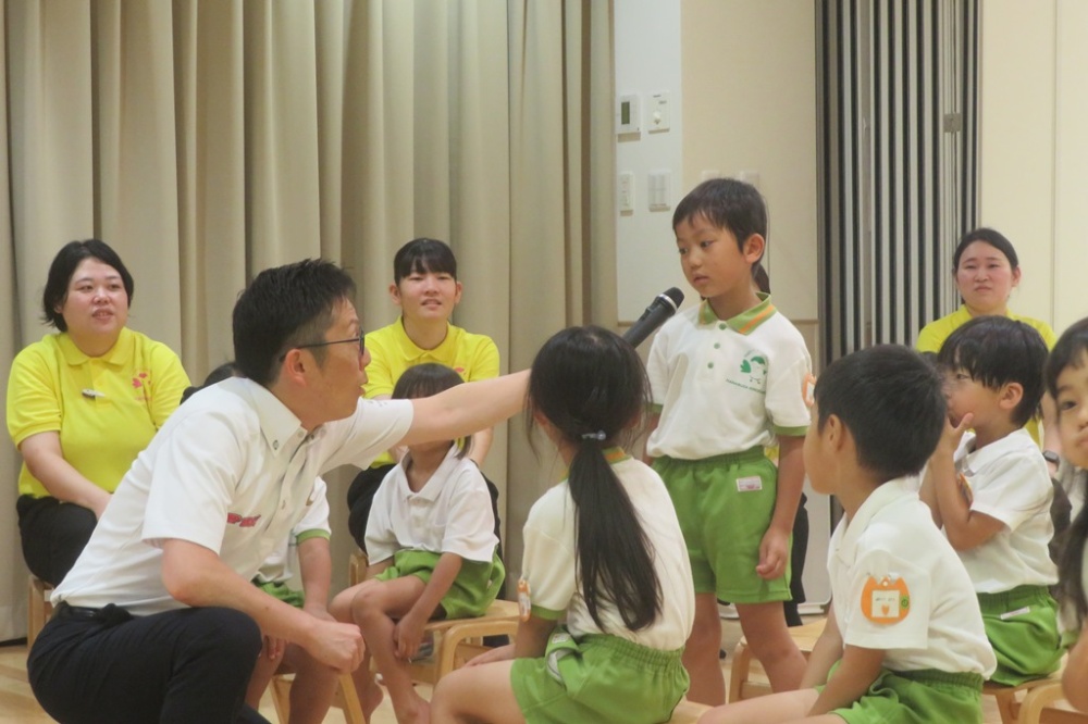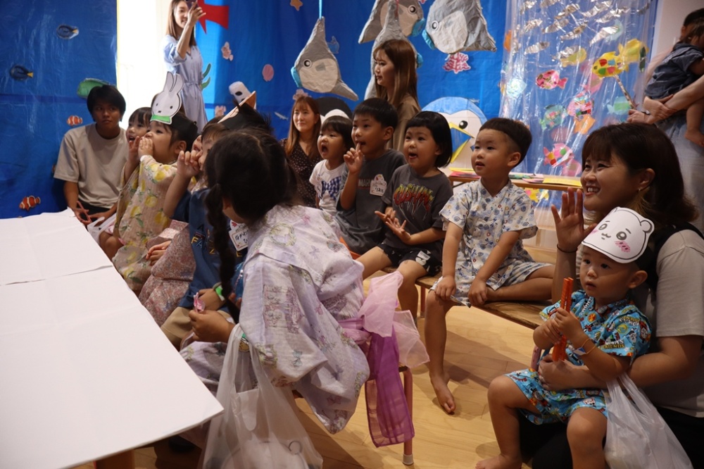 「会場のみなさまの中でお手伝いしてくれる方~?」の声掛けに「ハイッ」と手を挙げる子どもたち!
