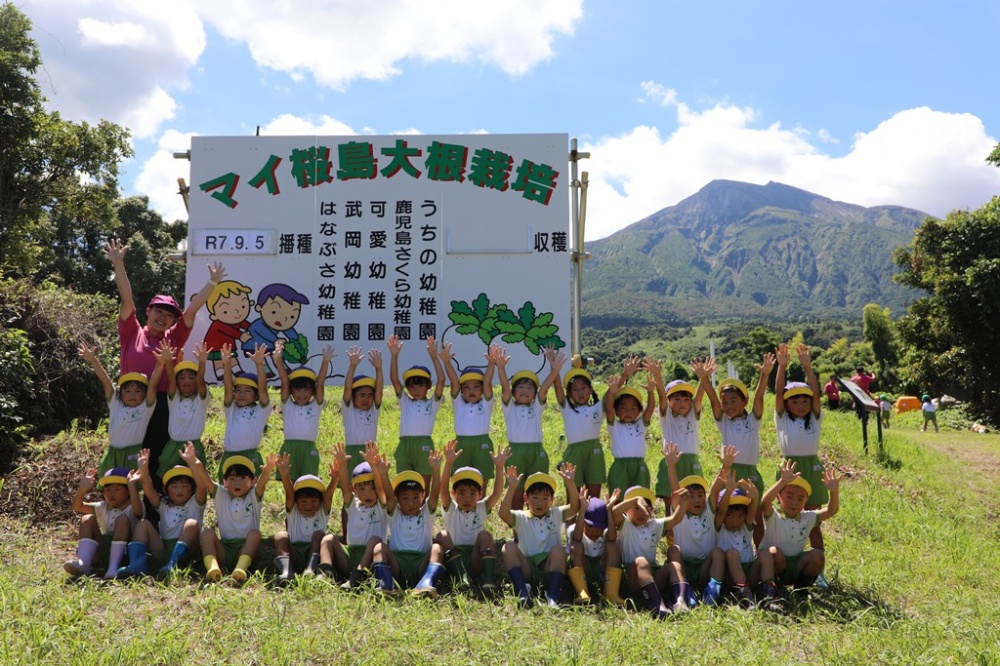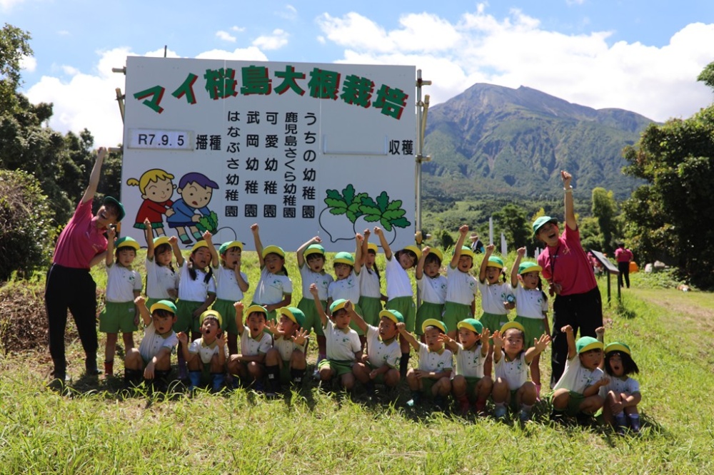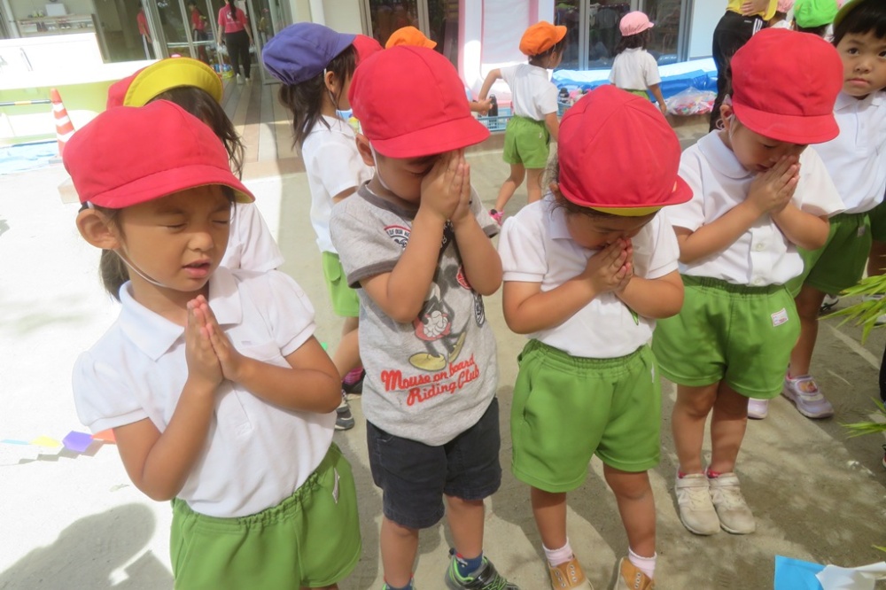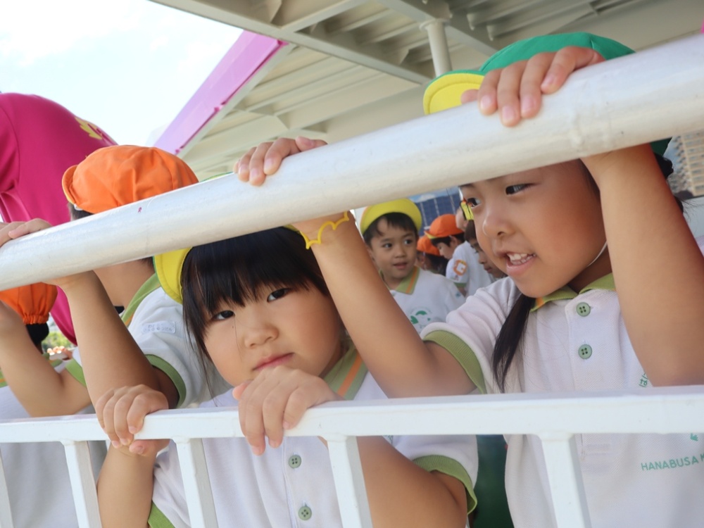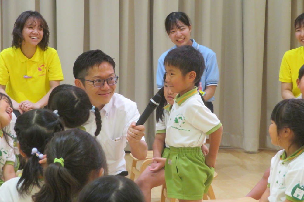 よ~く見ると子どもたちに負けじと手を挙げる先生たち!さすがはなぶさ幼稚園!