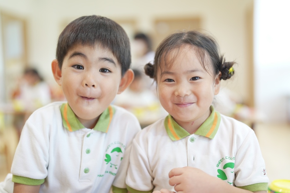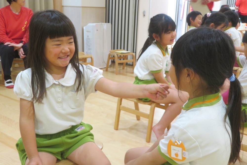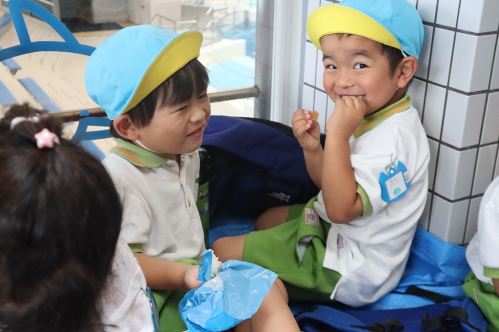 「ねぇ、ねぇ、何のおやつ持ってきたのー?」とお互いのおやつをのぞき込む2人