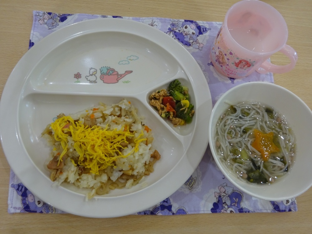 ちらし寿司 トマトのマリネ そうめん汁 カルピスです✨