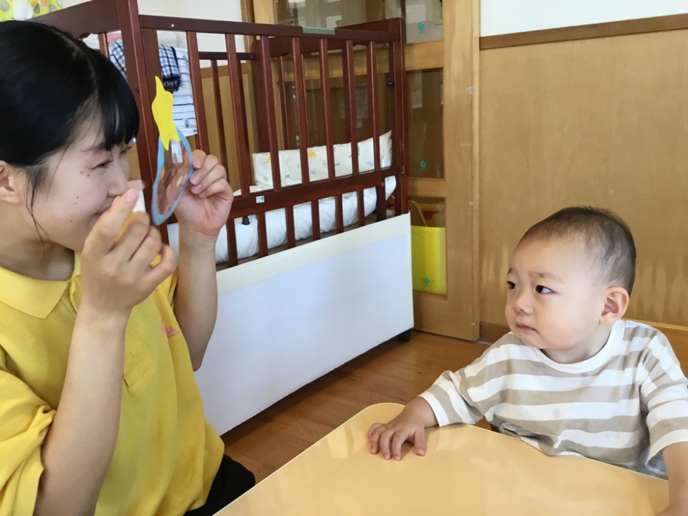 よしこ先生と目を合わせ、喜ぶこの姿も最高!