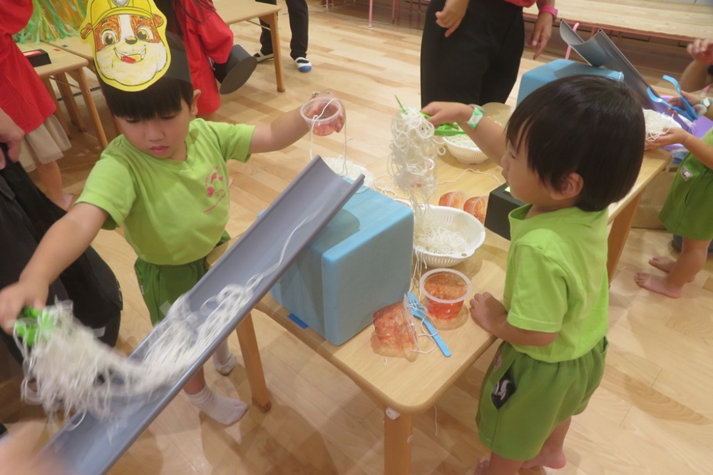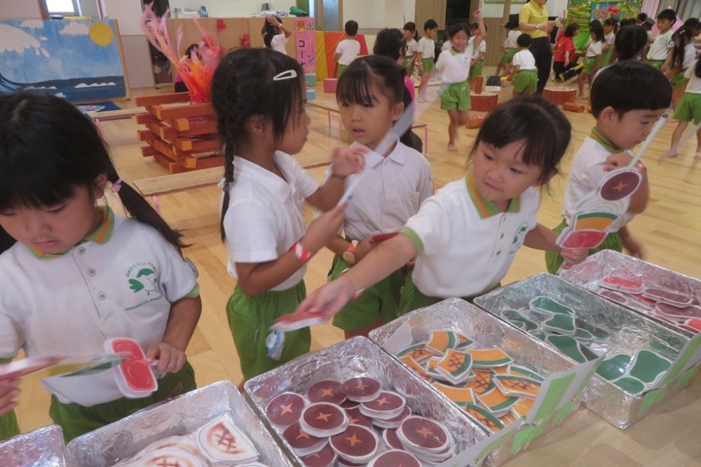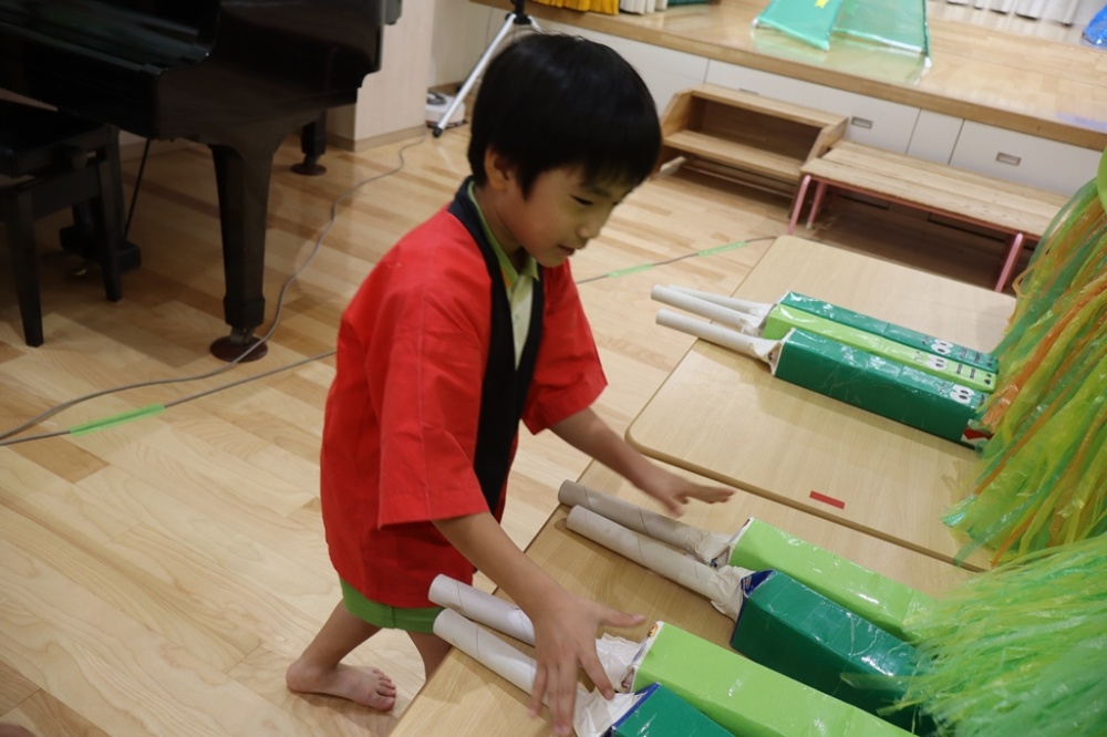 どんな材料で作ろうか、年長さんが一生懸命考え