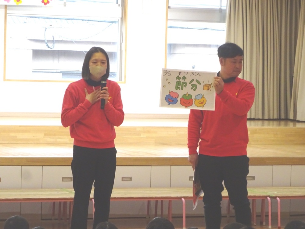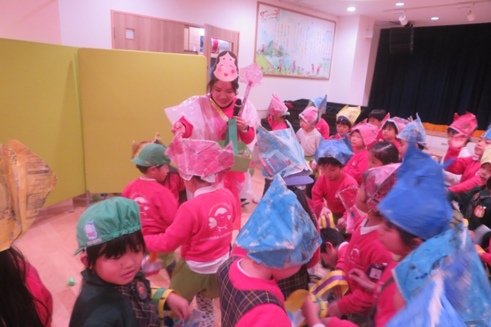 幼稚園でも、節分の話をして