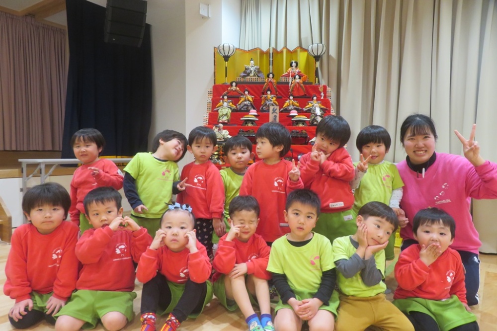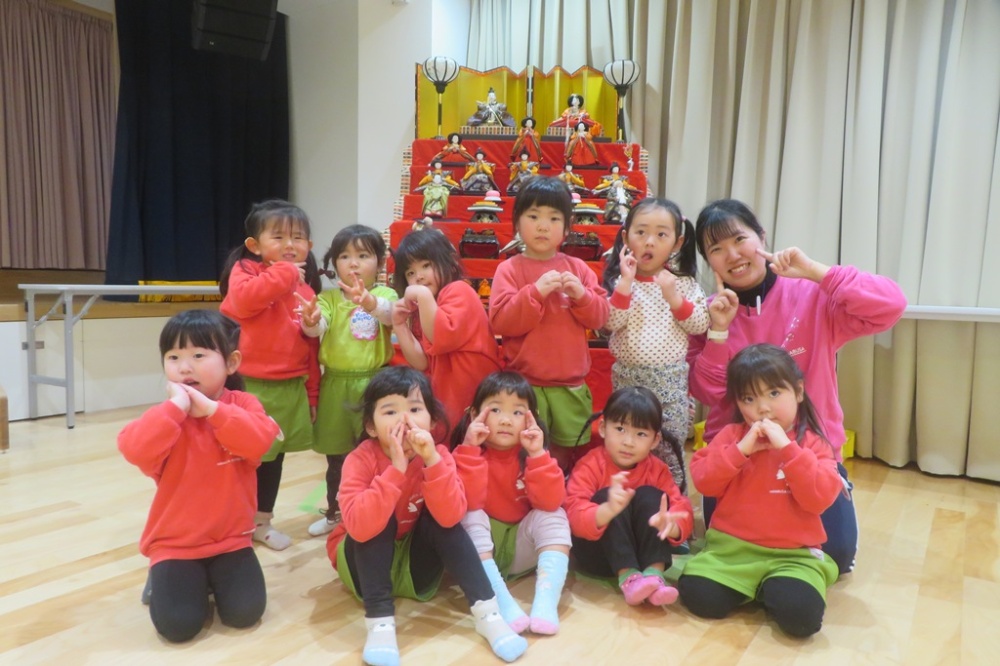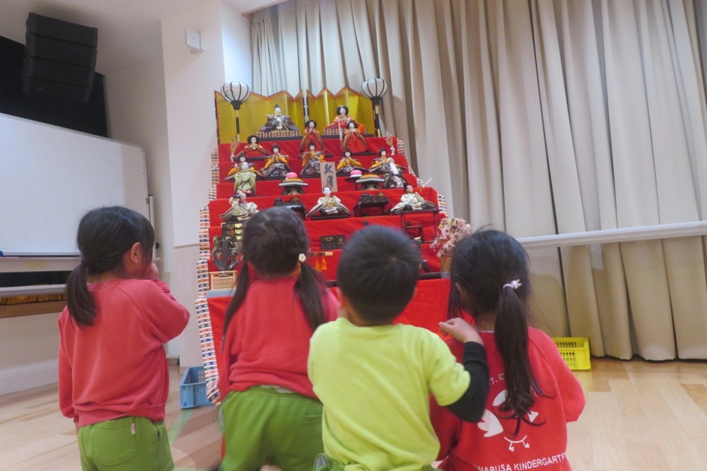 幼稚園にも、ひな人形が飾られ