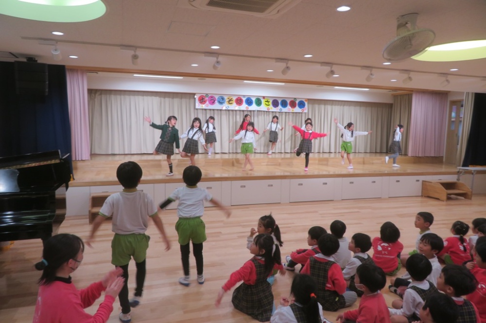年長組の女の子に、踊りとお遊戯を披露してもらいました🎵