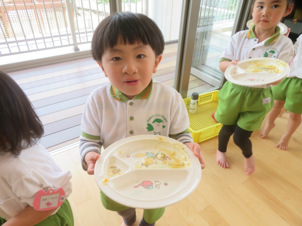 「食べ終わった!」と、ぴかぴかのお皿を