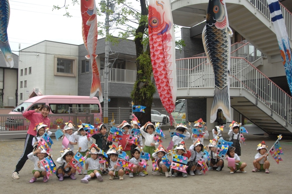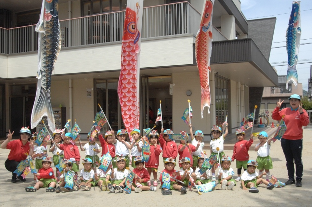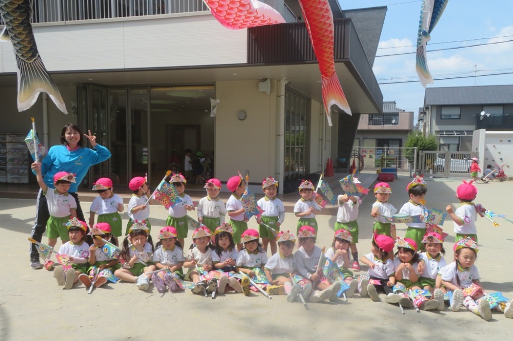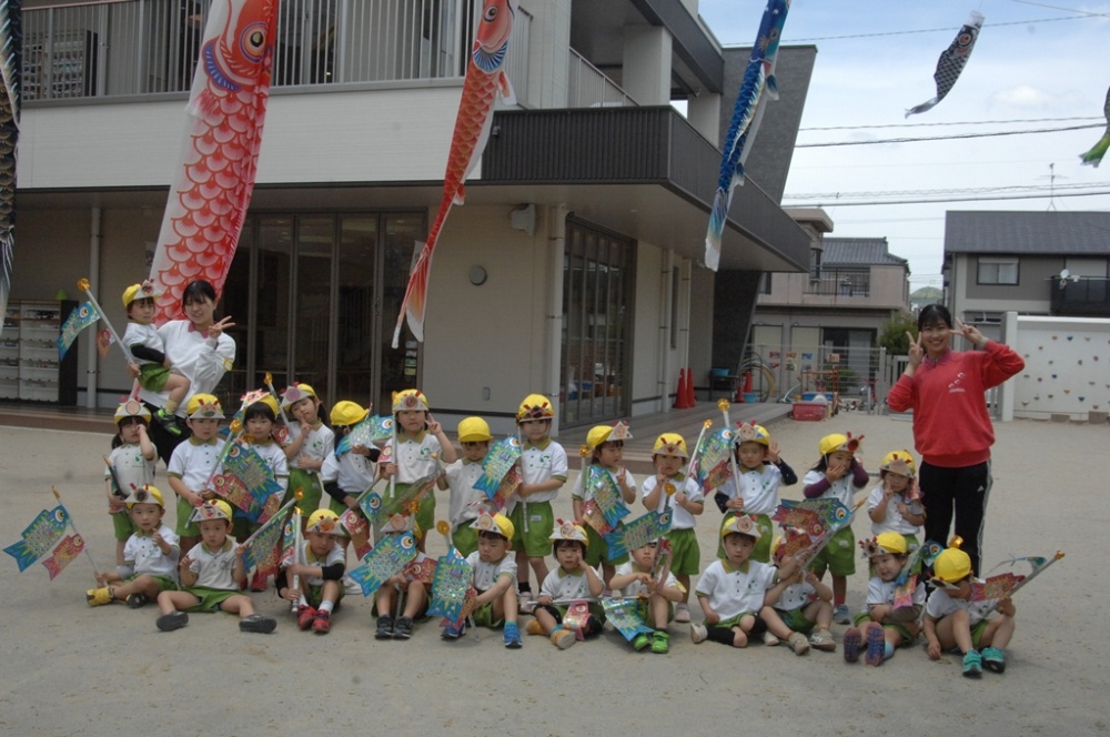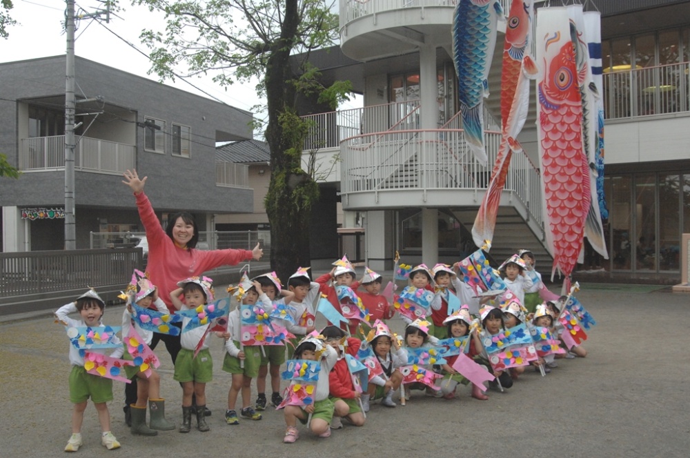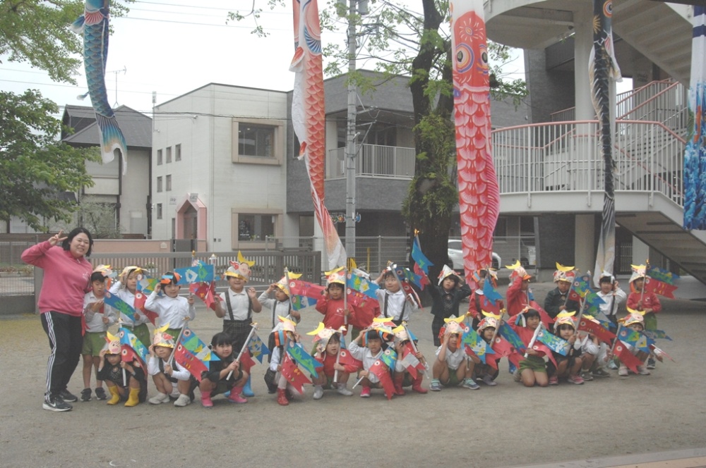 こいのぼりの登場に大盛り上がり!