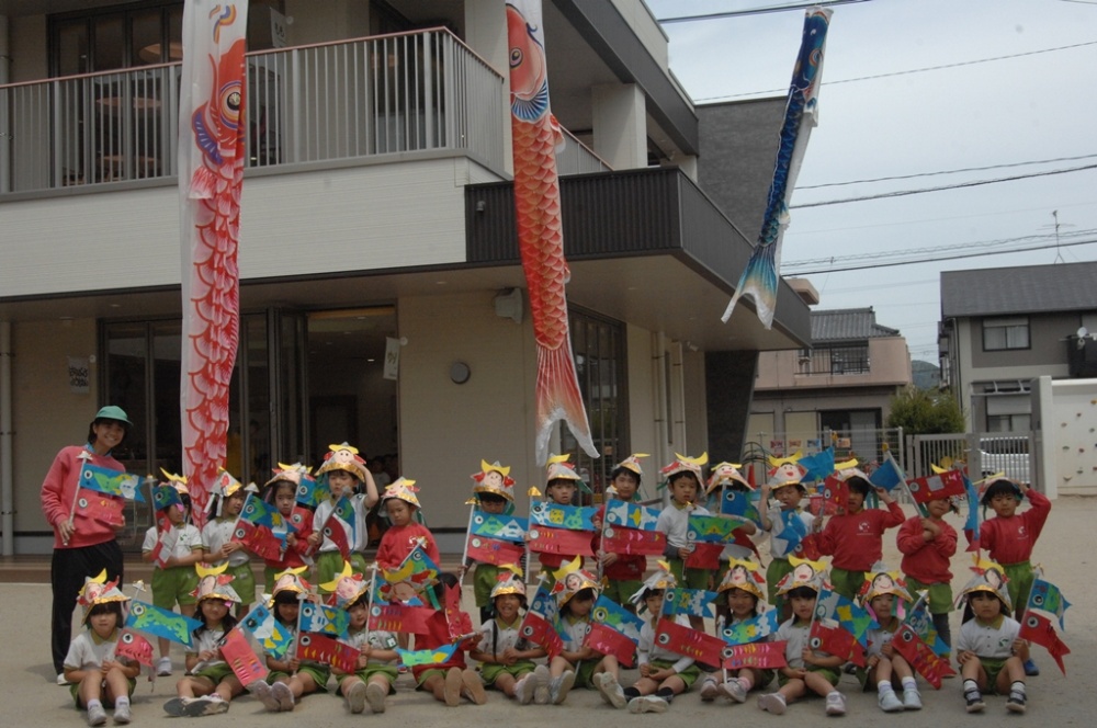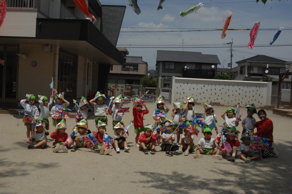こどもたちも、こいのぼりと かぶとの