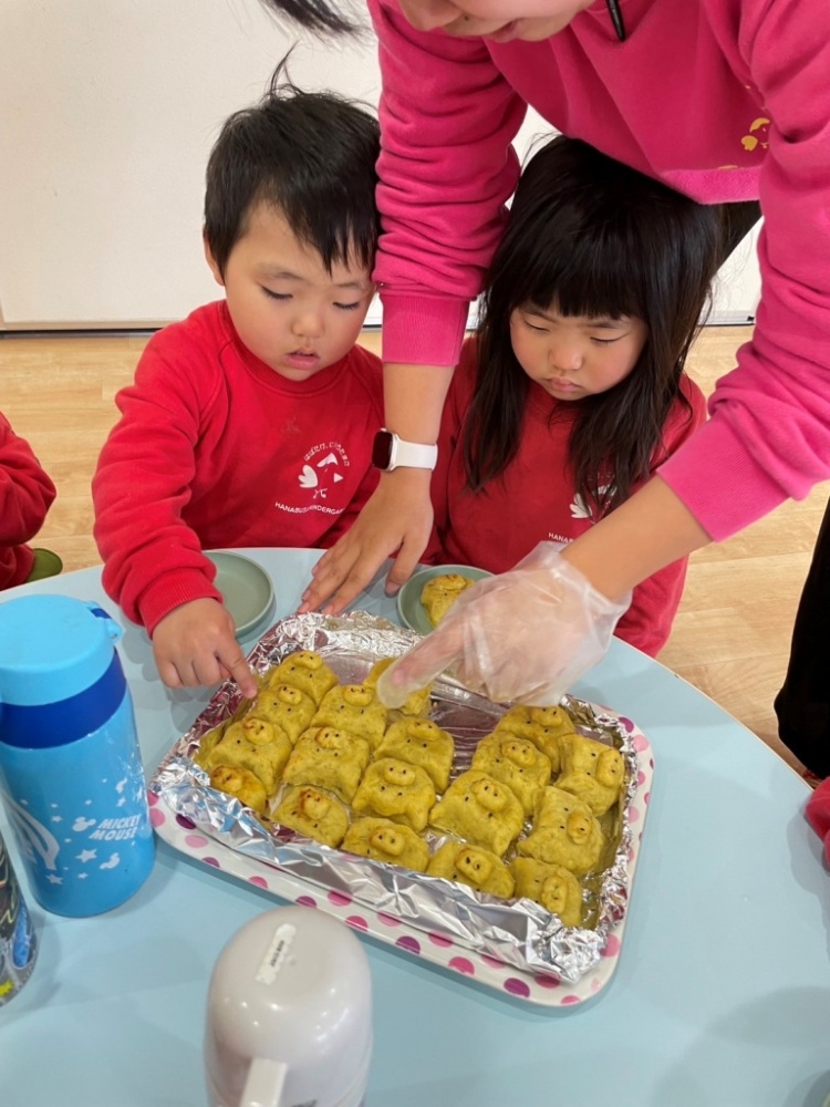 今日のおやつは、ぶたさんのスイートポテト!