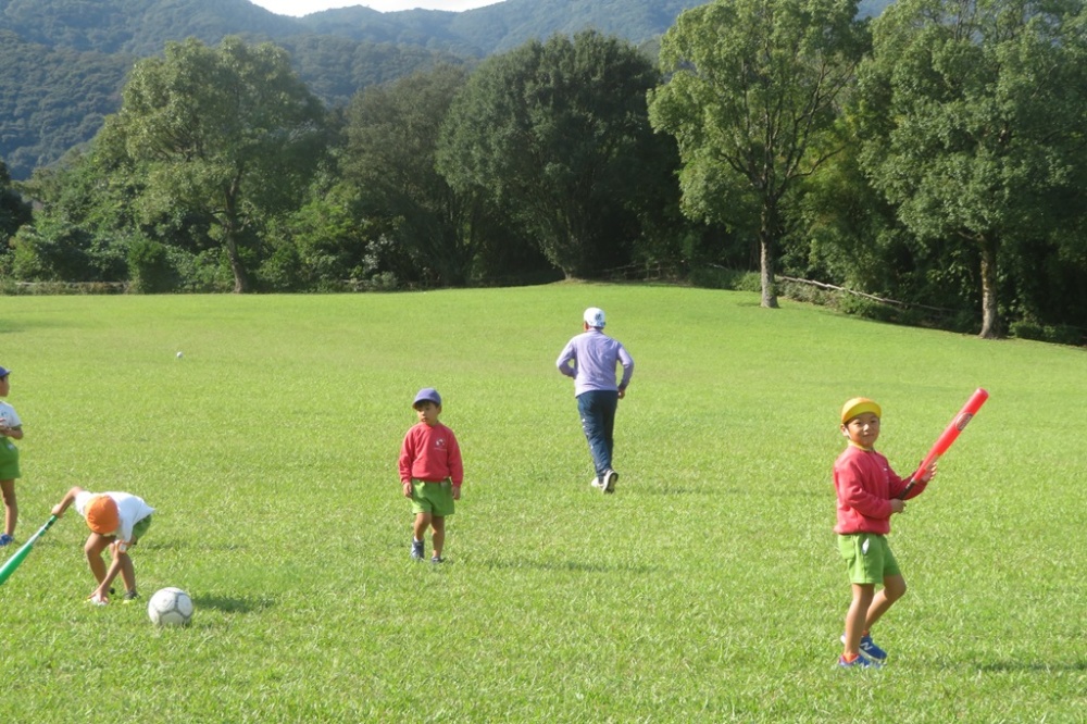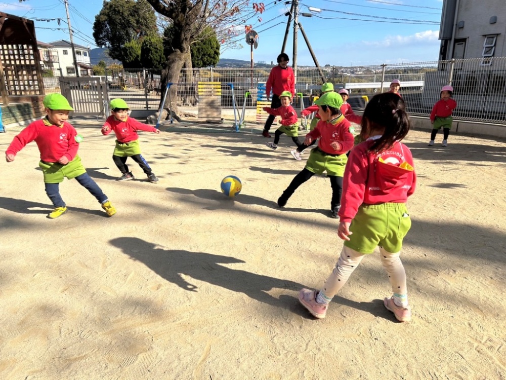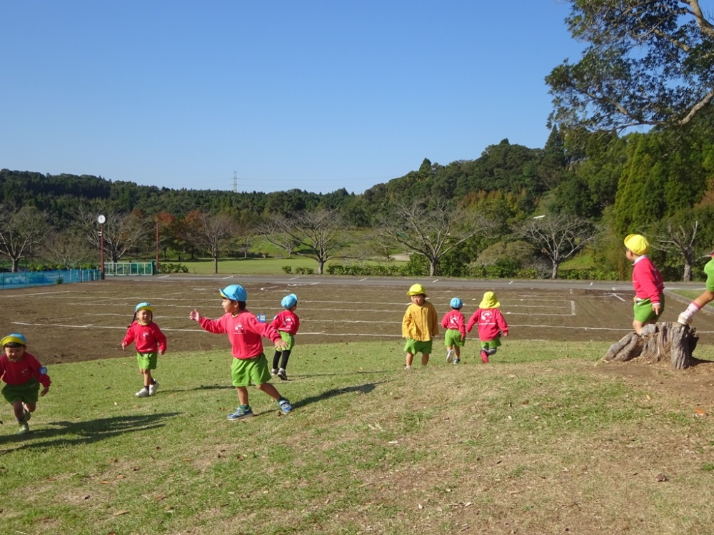 園庭で元気いっぱい走り回ったり、
