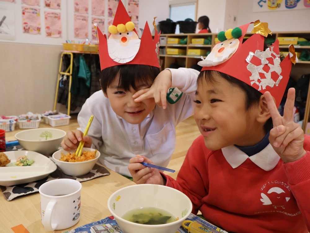 サンタさん、はなぶさ幼稚園の良い子のみんなに