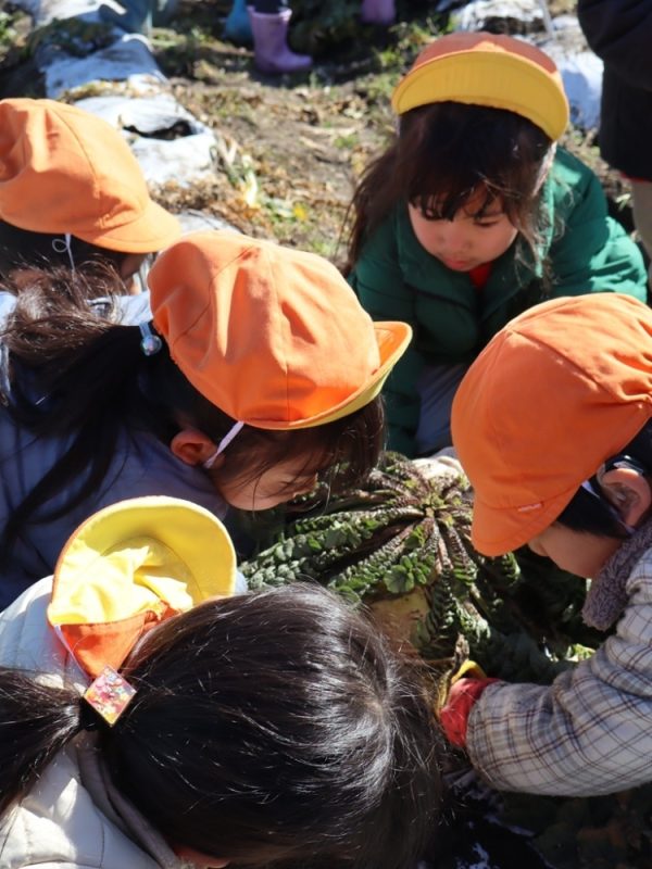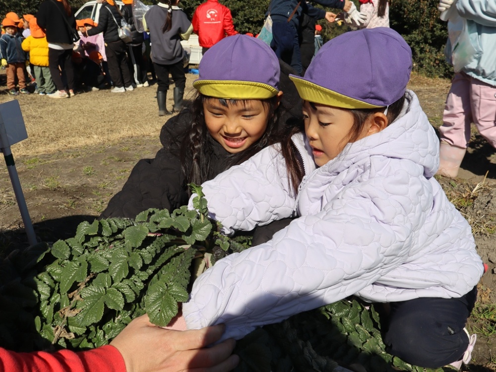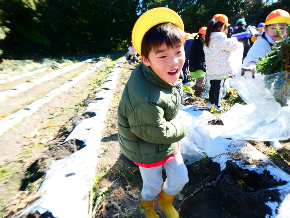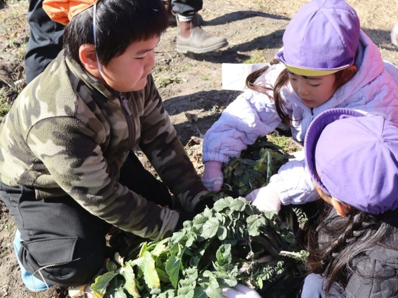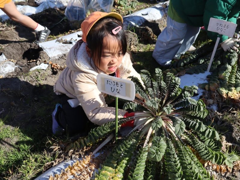 大根の掘り方や収穫した後の説明をしっかり聞いてます👀